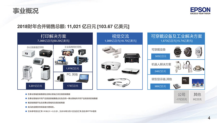 爱普生是全球技术领先企业,通过原创的“省、小、精技术”,倾力创建将人、物与信息互联的新时代。爱普生的主要产品线涵盖喷墨打印机、数码打印系统、3LCD投影机以及智能眼镜、传感系统和工业机器人,致力于在打印、视觉交流、可穿戴设备、机器人等领域持续创新,超越顾客的期待。